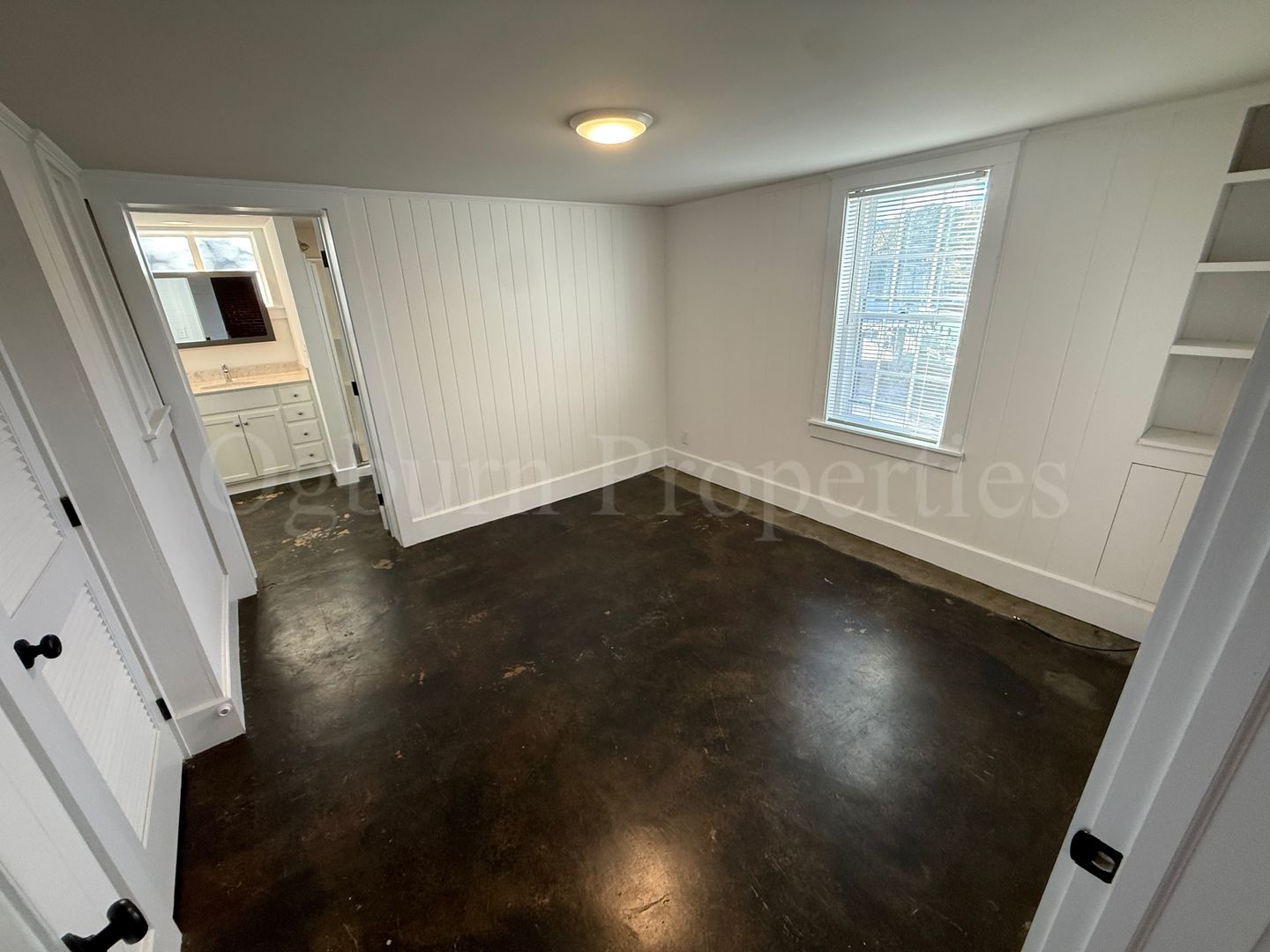 1BR/1BA, Living Room, Custom Bar Island, Cabinetry & Granite Counter Tops, S/R/DW, W/D, Walk-In Closet, Modern Full Bath, Stained Concrete Flooring, Heat Pump & Central A/C, Off Street Parking, Water Included.