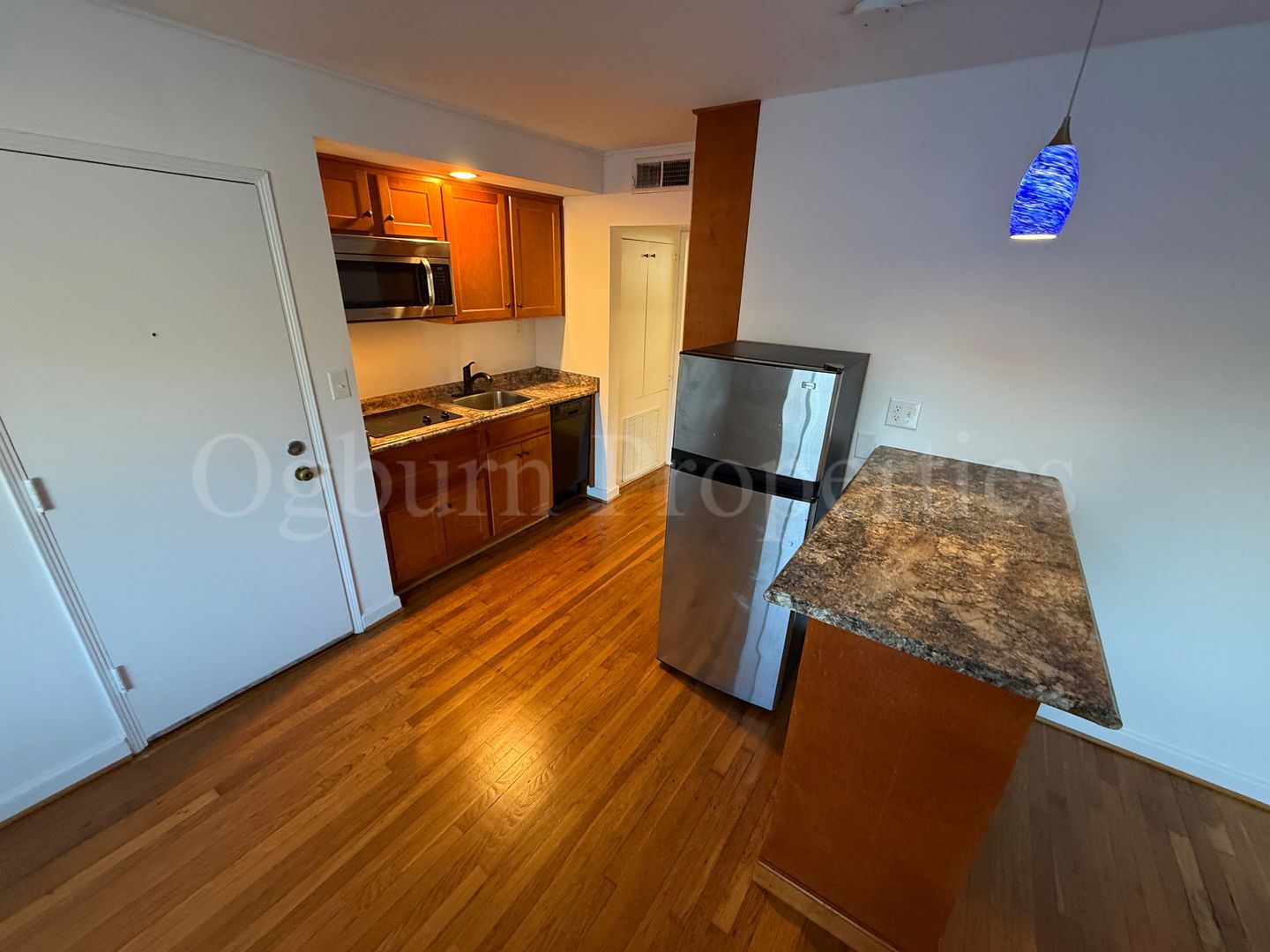 1 Bedroom, 1 Bath, 2nd Floor, Living Room With Built-In Counter, Cook Top, Dishwasher, Stainless Steel Refrigerator & Microwave, Refinished Hardwood Floors, Heat Pump & Central A/C, Water Included.