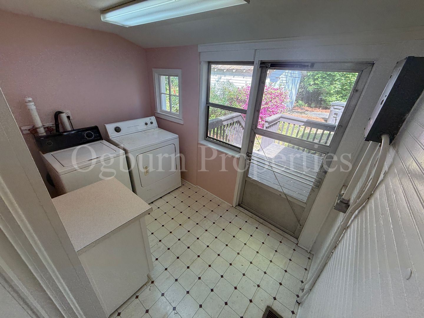2BR/1BA Charming Home Convenient to WFU; Hardwood Flooring; Kitchen Includes S/R/DW & Dining; Laundry Room Includes W/D; Front Screened Porch; Rear Deck; Paved Driveway; Detached Garage & Storage Building; Natural Gas Heat & Central A/C.