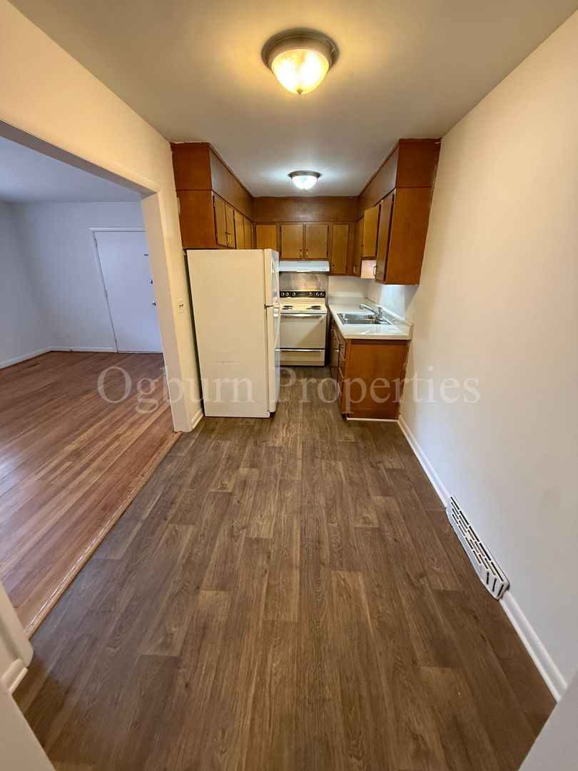 2BR/1BA, 1st Floor, S/R, Heat Pump & Central A/C, Refinished Hardwood Floors, Coin Laundry, Water Included.