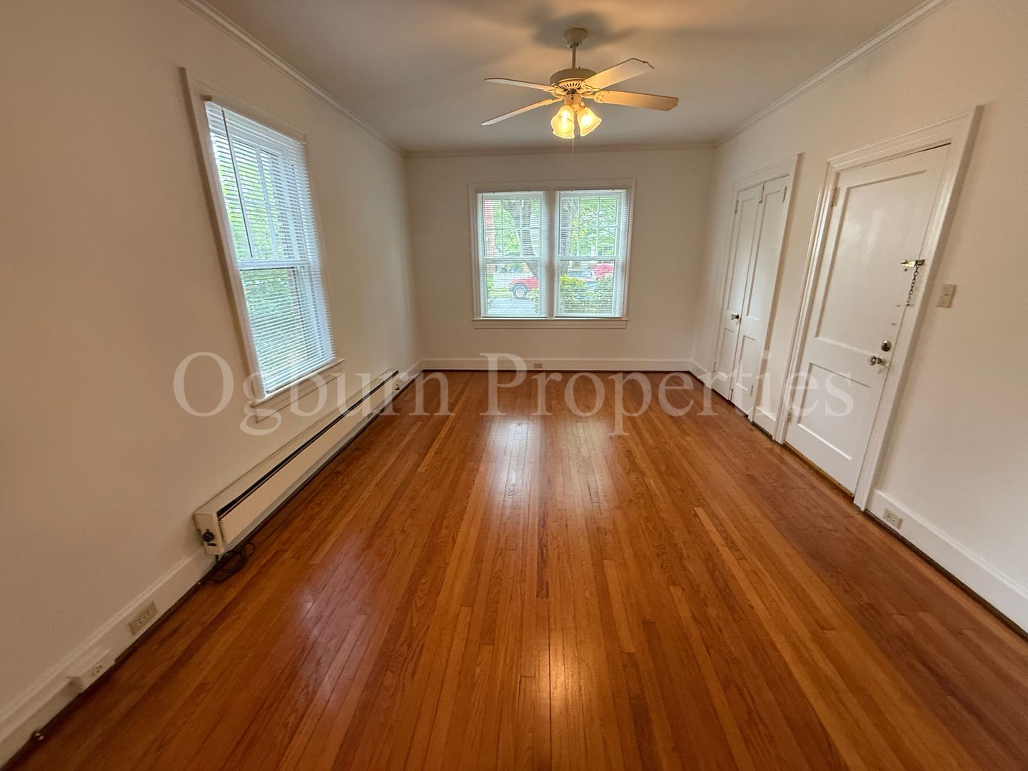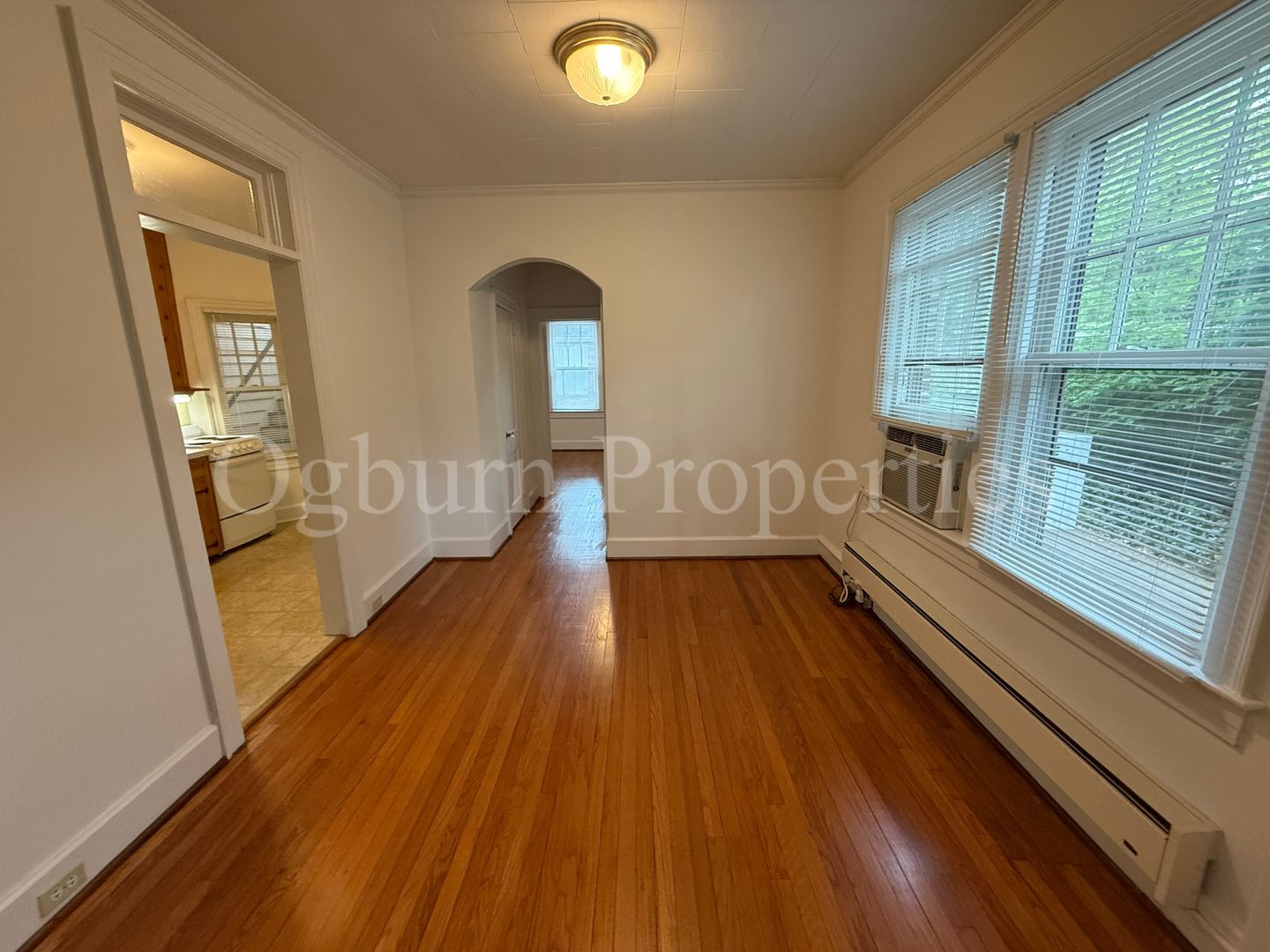 1BR/1BA. 1st Floor, High Ceilings, Hardwood Floors, S/R, Electric Heat, Window A/C, 1-Car Garage, Coin Laundry, Water Included.